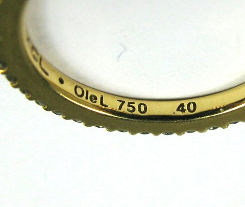 Ole L ring af 18 kt guld, prydet med brillantslebne diamanter i hele ringens omkreds, samlet 0,40 ct. Ring Str. 48, vægt 2,4 gr.
