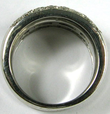 Ring af formodentlig 14 kt. hvidguld med tredelt skinne, prydet med 44 brillantslebne diamanter, samlet ca. 0,60 ct. Ring Str. 52, vægt 10,8 gr.