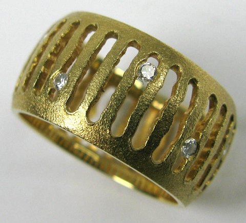 Ring af 14 kt. guld med gennembrudt skinne, prydet med 5 brillantslebne diamanter, tilsammen ca. 0,07 ct. Ring Str. 52½, vægt 5,2 gr.