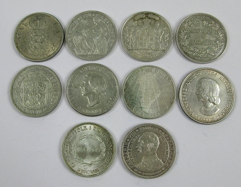 1 kr. Chr. IX 25 og 40 års regeringsjubilæum, 1888 og 1903 Frederik VIII / Chr. IX tronskifte, 1906 Chr. X / Alexandrine sølvbryllup 1923, Chr. X 25 års regeringsjubilæum, 1937, 60 års fødselsdag 1930, 75 års fødselsdag 1945, Margrethe II 18 års fødselsdag 1958, Prinsesse Anne Maries bryllup 1964 og Grønlandsindsamlingen 1953.
