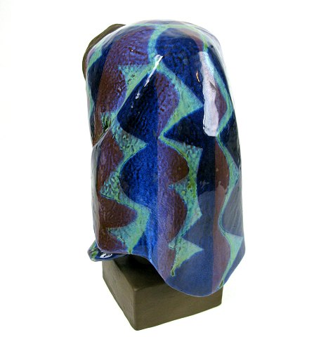 J. Hedegaard buste af keramik i form af kvindehoved med tørklæde. 159/2897. H. 31 cm. Fremstillet hos Royal Copenhagen/Aluminia omkring 1960.