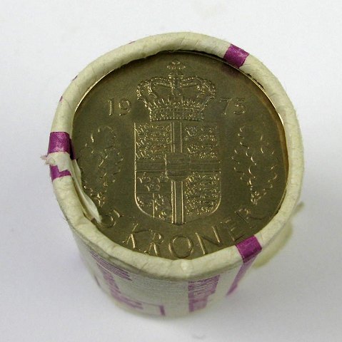 Privatbanken møntrulle 100 kr i 5 kr, årstal 1975