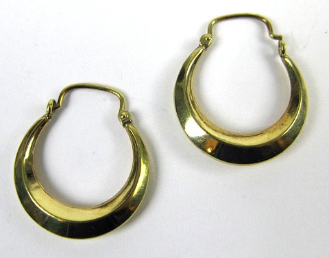 Par halvmåneformede ørestikker af gulddoublé, diameter ca. 20 mm.