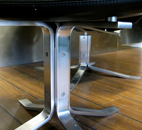 Poul M. Volther Corona hvilestol inkl. skammel EJ 5-F, begge på stel af matforkromet stål, formstøbt polstring betrukket med sort læder.