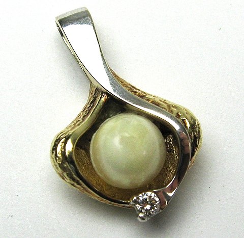 Vedhæng af 14 kt. guld med brillant 0,05 ct. og kulturperle