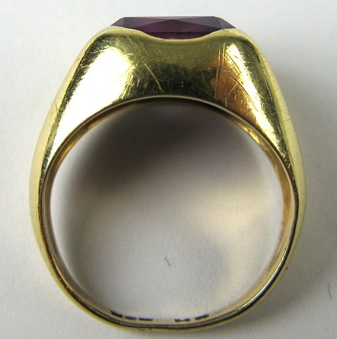 Ring af 14 kt. guld, prydet med facetsleben ametyst 11 x 9 mm. Ring Str. 49, vægt 4,3 gr.