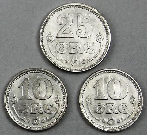Christian X 25 øre og 2x 10 øre sølv 1918/1919 (3)