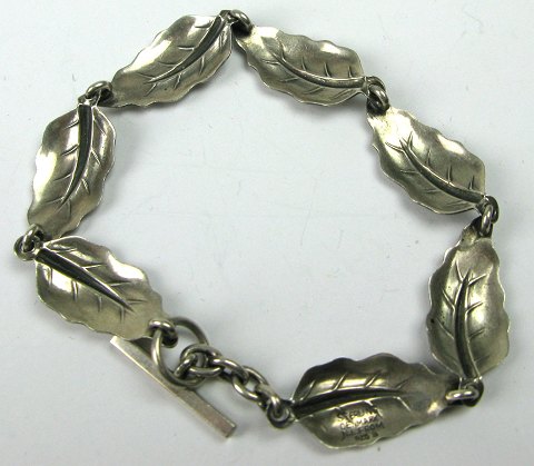 Armlænke med bladformede led af sterling sølv, L. ca. 18,5 cm., vægt 9,8 gr. Fremstillet efter 1944.