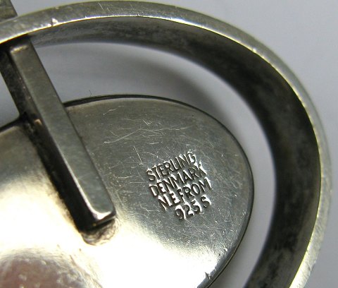 Halssmykke af sterling sølv med segmentled, ovalt vedhæng prydet med poleret tigerøje kvarts, L. ca, 44 cm., vægt 30 gr. Fremstillet efter 1966.