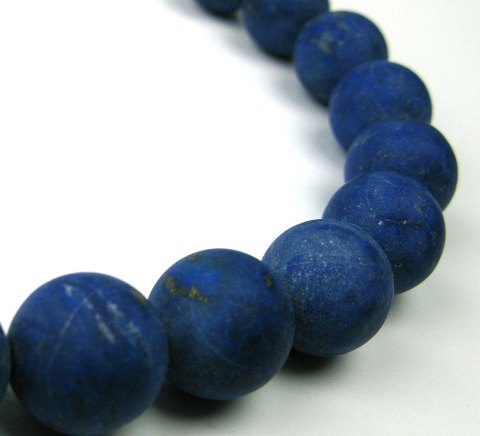 Halssmykke af naturlige, ubehandlede lapis lazuli kugler på 13 mm. med låseanordning til kuglelås. L. 40 cm.