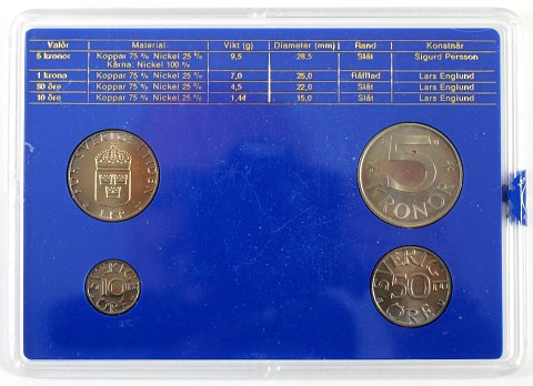 5 kronur og 1 krona samt 50 øg 10 öre i uåbnet plexiglas showcase.