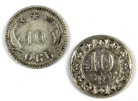 Chr. IX 10 øre sølv 1904 og Fr. VIII 10 øre sølv 1911