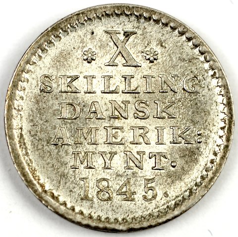 Dansk amerikansk 10 skilling sølv 1845 - H 14 - KM 16