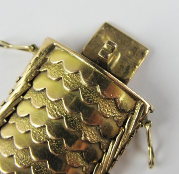 Armlænke af 18 kt. guld med led i form af fikeskæl, hvert andet led med struktureret overflade. L. 20,5 cm. Vægt ca. 73,4 gr.