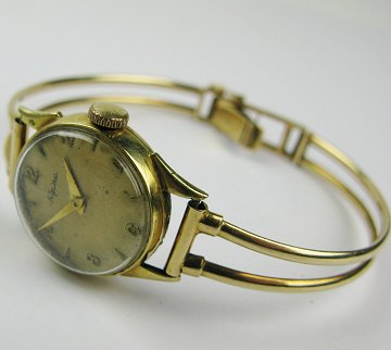 Alpina, damearmbåndsur i kasse og med bagkapsel samt tilhørende lænke af 14 kt. guld.
