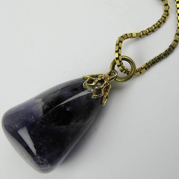 Halskæde af 8 kt. guld, prydet med dråbeformet ametyst vedhæng, L. ca. 4 cm. Halskæde L. ca. 43 cm.