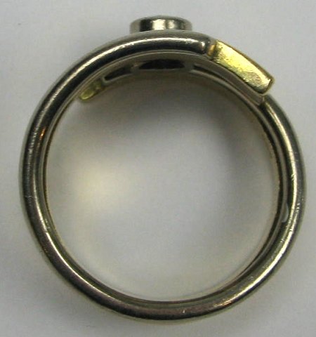 Massiv cross-over ring af 14 kt. guld, prydet med brillantsleben diamant på ca. 0,35ct. Ring Str. 57, vægt 14,6 gr.