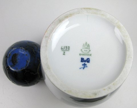 B&G vase af porcelæn, dess. 6132 bemalet med blomstrende syrengren samt Hermann A. Kähler vase af keramik med koboltblå overglasur. B&G vasen 1. sortering, H. 24 cm., HK vasen H. 12 cm.