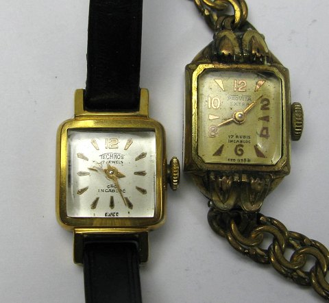 Lot bestående af to damearmbåndsure af guld doublé fra 1950'erne samt halskæde med bladformet vedhæng, ligeledes af guld doublé. Sidstnævnte kæde L. 44 cm.