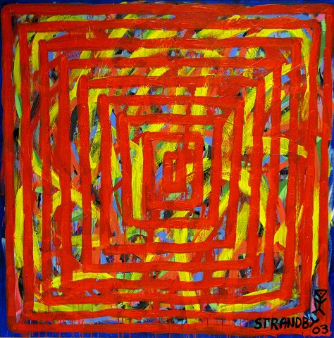Kenneth Strandby, acrylmaleri på lærred med titlen *Den Kinesiske Æske*. Signeret og dateret 03, 130 x 130 cm.