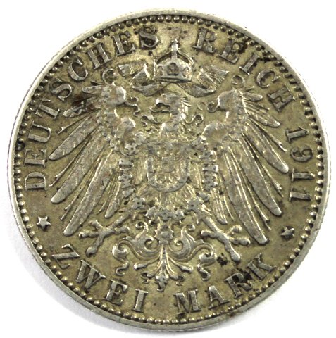 Hamburg, 2 Mark 1911 sølv - KM 612