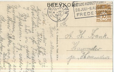 Dansk brevkort annulleret 1933