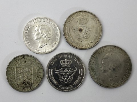 Danmark, lot 5 kr og 2 kr samt 2 kr sølv 1958 (5)