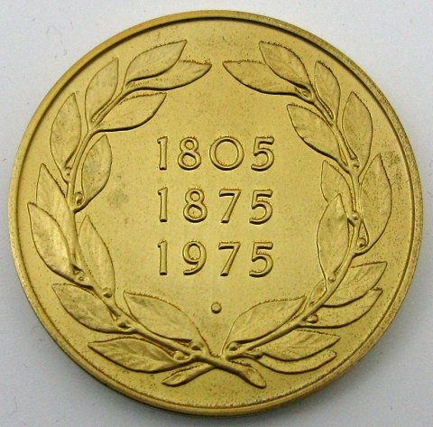 Limiteret H.C. Andersen medaille af legeret metal, præget i anledning af H.C. Andersens 100 års dag 1805-1875-1975, diameter 55 mm.