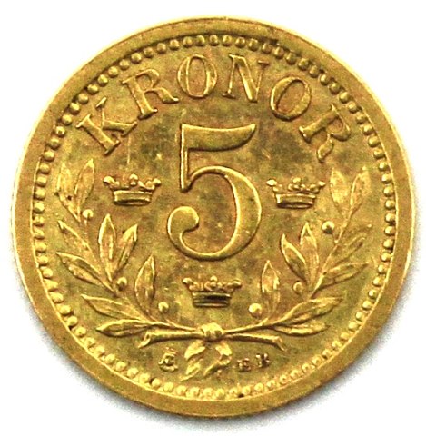 Sverige, Oscar II, 5 kr guld 1899 - Sieg 83, SM 39