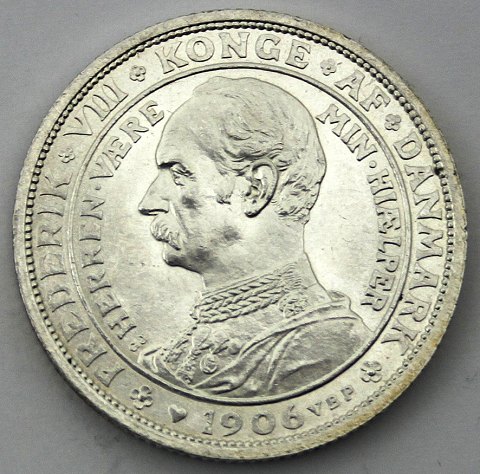 Tronskifte Chr. IX til Fr. VIII, 2 kr sølv 1906 - H 3