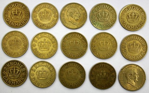 Chr. X og Fr. IX, samling 2 kr diverse årstal - (15)
