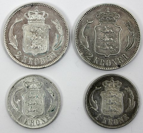 Chr. X, 2 kr sølv 1915 og 1916 - H 8 samt kr 1915 og 1916 - H 9