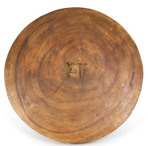 Rund bordplade af hårdttræ. Udskåret med afrikansk motiv - elefanter og træer. Håndskåret i Afrika 20. årh.