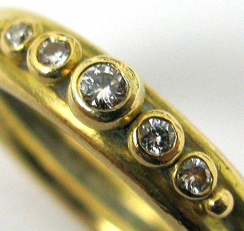 Fremstillet af Marlene Juhl Jørgensen, vægt 6,7 gr. Medfølgende faktura hvoraf det fremgår diamanterne er Top Wesselton og ca. 0,10 ct. Ring Str. 53
