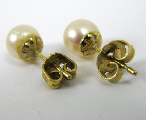 Par ørestikker af 8 kt. guld med 7 mm. kulturperler
