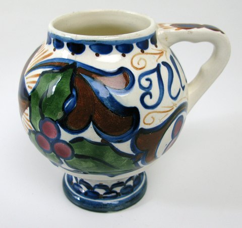Aluminia julekrus/vase årgang 1908, balusterformet, bemalet korpus på rund fodstykke og med hank. Kant foroven med minimal hårrevne. H. 12 cm. Dess. 623/552 - Aluminia 29