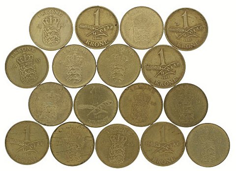 Samling 1 kr i varierende kvalitet