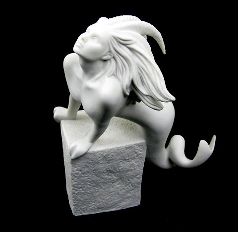 Kgl. figur dess. 1249 099 af blanche de chine porcelæn i form af stjernetegnet stenbukken. H. 23 cm.