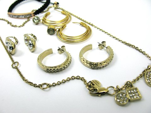 Lot nye Dyrberg/Kern smykker samt ørestikker af gulddoublé