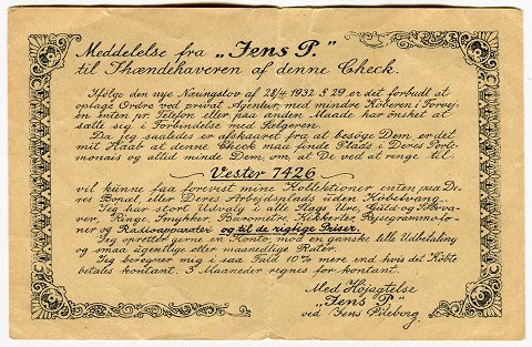 Reklame kreditbankseddel, 5 kr Vestre Urkreditbank 1932