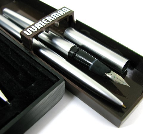 Silverline pencil, fyldepen, kuglepen og tuschpen samt Waterman fyldepen og kuglepen. Alle yderst velholdt i original salgsæske.