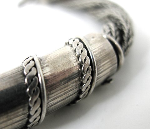 Armlænke af flettet sølv med spiralformet sølvmontering. L. 18,5 cm., vægt 40,3 gr.