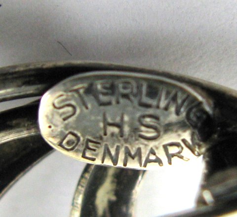 Broche i form af buket, prydet med 2 facetslebne aquamariner. L. 50 mm. Fremstillet hos Hermann Siersbøl efter 1948.