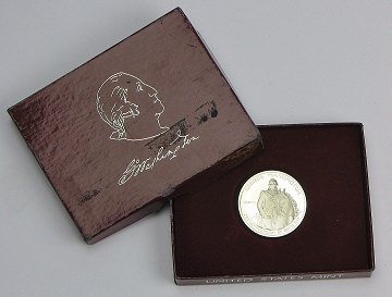 Mønt præget i anledning af 250 året for George Washingtons fødsel.