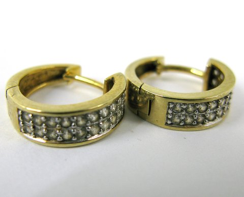 Par ørestikker af 8 kt guld, hver prydet med to rækker brillantslebne zirkonia. diameter 15 mm.