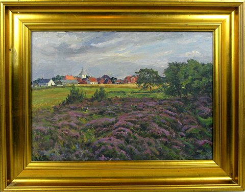 Jens Lauritz Thomsen, signeret oliemaleri *Tordenluft over ansager* 42 x30 cm. Charlotteborg udstiller 1903, elev af G. Vermehren.