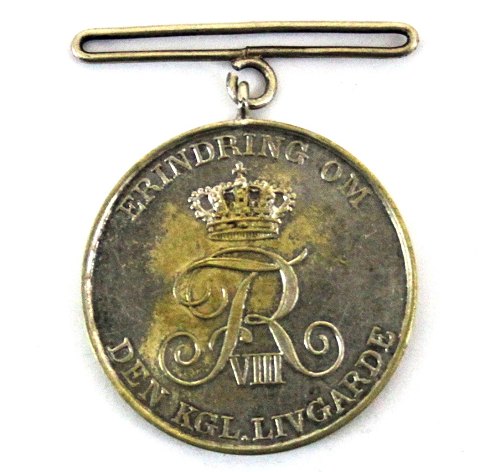 Livgardens 250 års jubilæum 1908 med Frederik III's og Frederik VIII's monogram. Diameter 29 mm.