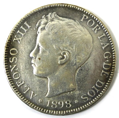 Spanien, Alphonso XIII, 5 pesetas sølv 1898 - KM 707