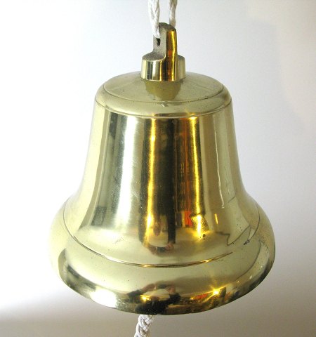 Skibsklokke af malm, indkøbt i USA. H 23 cm., diameter 26 cm.