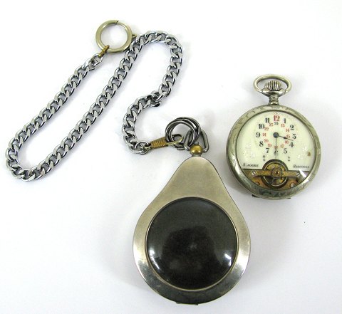 Hebdomas lommeur i urkasse af forsølvet metal. Segment skive med indblik i værket (skeleton) med arabertal og 24 timer indikation, pyntet med sølvfarvede blomster. Krans og bagkapsel dekoreret med blomster og bladværk. 8- dages ankerværk med stor fjeder som optrækkes ved rotation af hele værket. Urkasse diameter 50 mm. Tilhørende beskyttelseskapsel af metal samt urkæde medfølger.
